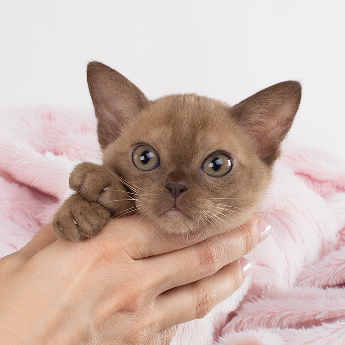 Liebenswürdig und menschenbezogen genießt sie die Nähe zu ihren Menschen und nimmt gerne am Alltagsgeschehen teil. Sie ist sanft zu Kindern und gelassen im Umgang mit anderen Tieren. Ihr ausgezeichneter Burmesentyp wurde durch Showtitel und Auszeichnungen bestätigt. Eine ausgezeichnete und hingebungsvolle Mutter.